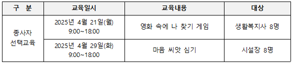 [선택교육] 종사자 선택교육 '마음건강 집단상담 프로그램' 진행 안내