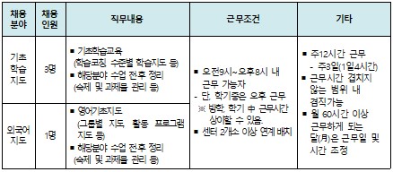 다. 채용유형 및 인원 : 9명(전일근무 5명, 단시간근무 4명)