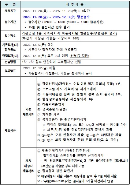 [기장군] 2026년 아동복지교사(기간제 근로자) 채용 공고