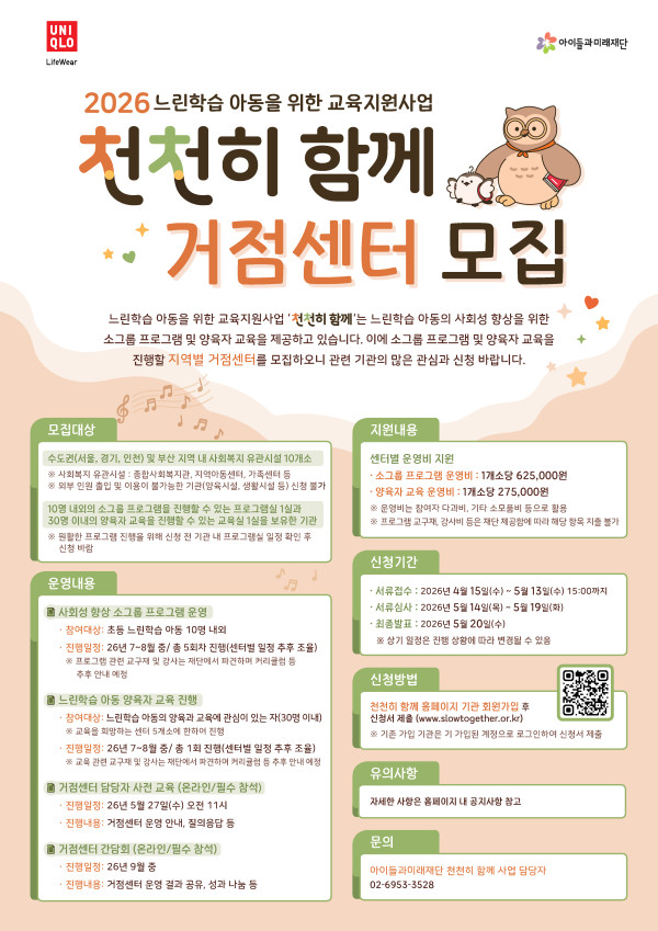 [아이들과미래재단] 2026 느린학습 아동 교육지원 사업 '천천히 함께' 거점센터 모집 안내